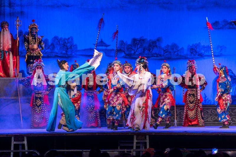 2025年5月4日晚,浙江省金华市婺城区婺州古城景区,游客在欣赏婺剧大戏《青蛇传》。