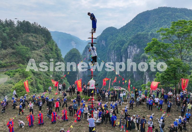 2025年5月5日,一年一度的湖南省湘西土家族苗族自治州吉首市苗族“四月八”传统民族活动在矮寨镇举行。苗族群众身着节日盛装,开展赶歌场、打苗鼓、唱苗歌、狮子登高等系列民俗表演活动,与众多游客一起共度佳节。据了解,苗族“四月八”节2011年入选第三批国家级非物质文化遗产名录。