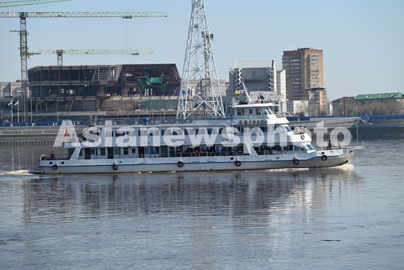 图片说明:2025年5月7日,黑河港务局有限公司客船“龙客203号”搭载旅客驶往俄罗斯布拉戈维申斯克口岸码头。