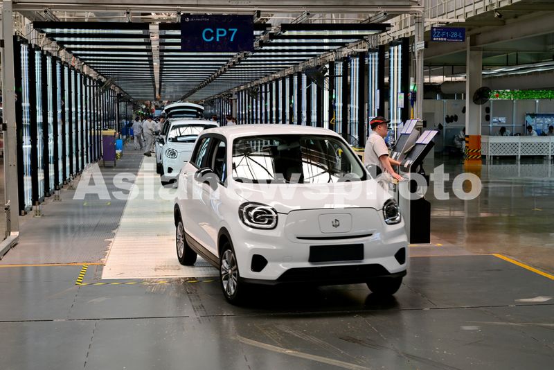 2025年5月13日,浙江省金华市新能源汽车小镇零跑汽车智能工厂车间自动化生产线高效运转,一辆辆新能源汽车正有序下线。