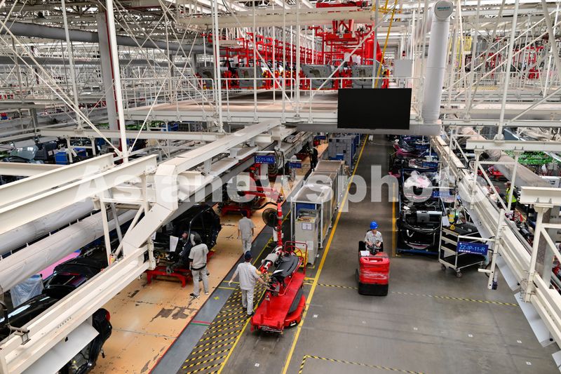 2025年5月13日,浙江省金华市新能源汽车小镇零跑汽车智能工厂车间里,工人们正在新能源汽车自动化生产线上装配零部件。