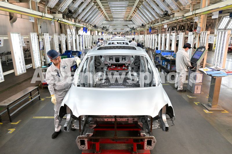 2025年5月13日,浙江省金华市新能源汽车小镇零跑汽车智能工厂车间里,工人们正在新能源汽车自动化生产线上装配零部件。