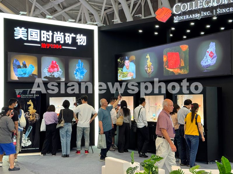 2025年5月15日,南京矿博会现场,美国时尚矿物展台吸引观众。