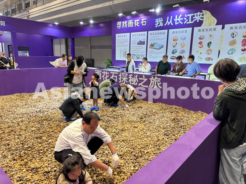 2025年5月15日,南京矿博会科普活动区,雨花石探秘之旅吸引观众挖宝。
