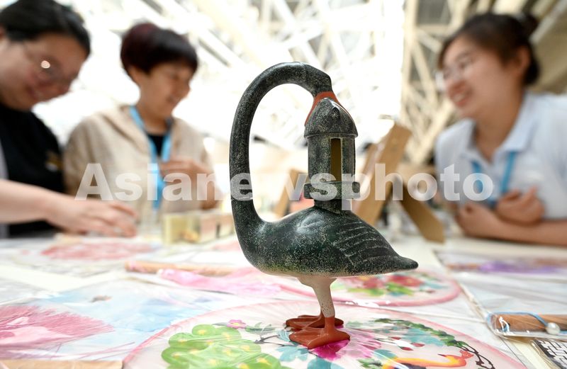 5月16日,在河北省邯郸市博物馆,游客在京津冀博物馆文创市集上参观。