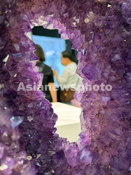 2025年5月15日,中国南京(国际)矿物宝石化石博览会现场,本届矿博会核心元素紫色矿物重磅呈现吸引观众。