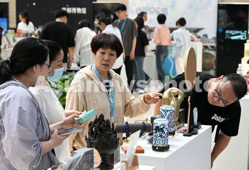 5月16日,在河北省邯郸市博物馆,游客在京津冀博物馆文创市集上参观。