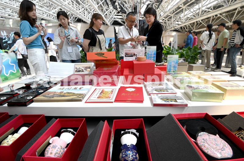5月16日,在河北省邯郸市博物馆,游客在京津冀博物馆文创市集上参观。