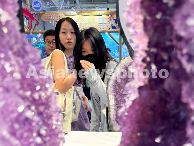 2025年5月15日,中国南京(国际)矿物宝石化石博览会现场,本届矿博会核心元素紫色矿物重磅呈现吸引观众。