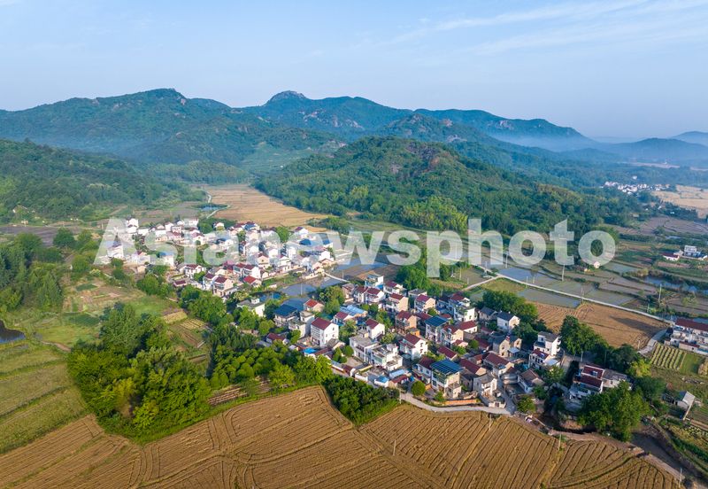 图片说明:2025年5月19日,安徽省芜湖市繁昌区孙村镇赤沙社区,错落有致的民居与青山、田野、道路、晨雾等相互映衬,构成一幅生态优美的田园画卷。