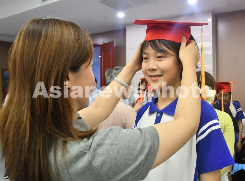 图片说明:2025年5月18日,在河北省邯郸市永年区的衡一永华中学成人礼活动上,家长正在为学生戴上“成人帽”。