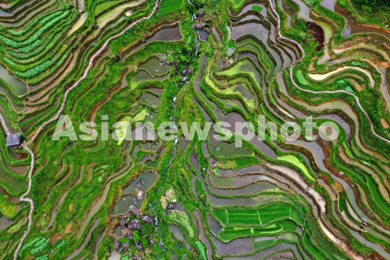 图片说明:2025年5月18日,在广西融水苗族自治县安太乡培秀苗寨,青山环抱着梯田,苗寨点缀其间,如诗如画,美不胜收。