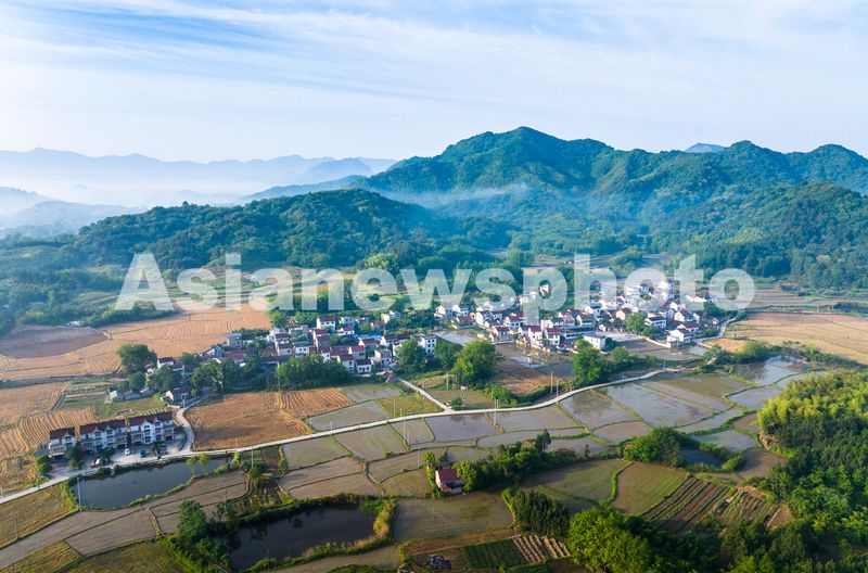图片说明:2025年5月19日,安徽省芜湖市繁昌区孙村镇赤沙社区,错落有致的民居与青山、田野、道路、晨雾等相互映衬,构成一幅生态优美的田园画卷。
