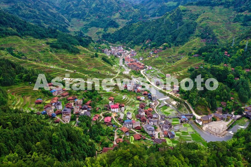 图片说明:2025年5月18日,在广西融水苗族自治县安太乡培秀苗寨,青山环抱着梯田,苗寨点缀其间,如诗如画,美不胜收。