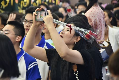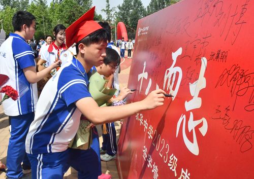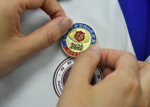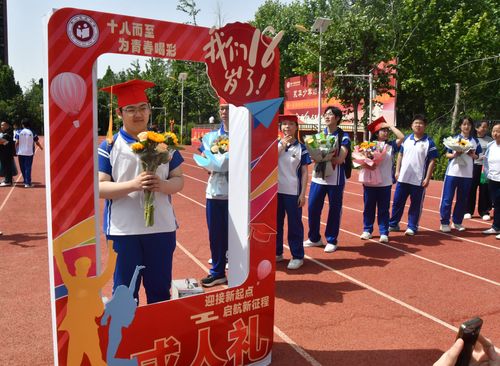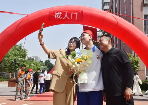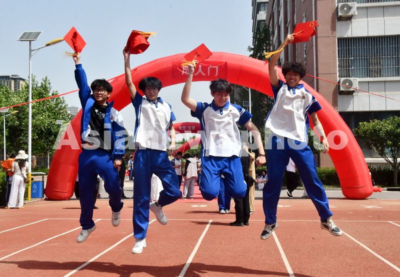 图片说明:2025年5月18日,在河北省邯郸市永年区的衡一永华中学成人礼活动上,学生在“成人门”前跳跃。