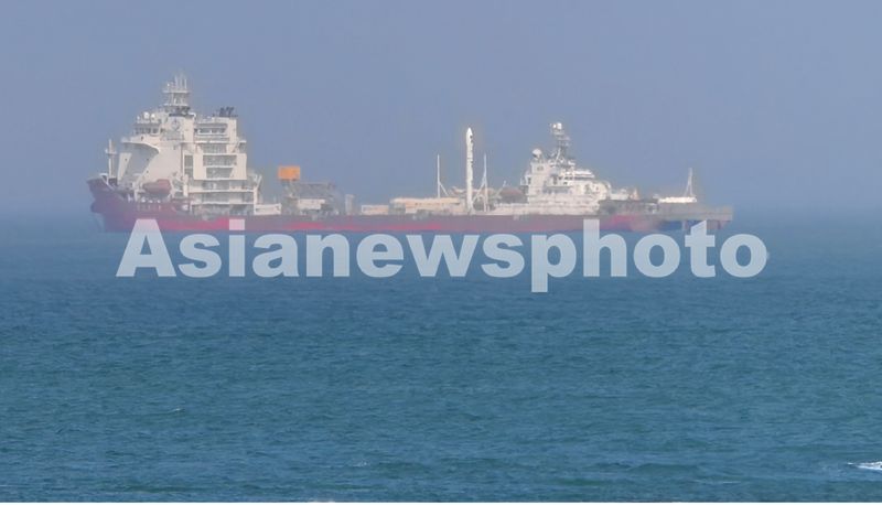 这是5月19日在山东省日照市灯塔景区拍摄的火箭发射船。