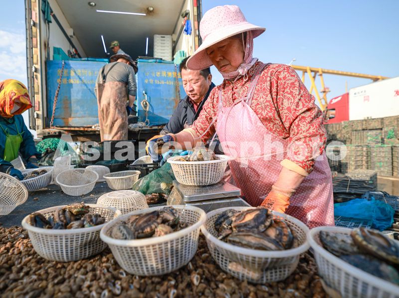 2025年5月20日,在山东省荣成市俚岛镇俚岛湾一处码头,呈现出一片忙碌景象,养殖户卸运、分拣从福建归来的鲍鱼,运往养殖区继续增肥。据了解,再有大约一个月的时间,这些鲍鱼就可以供应市场,走上市民的餐桌。荣成市充分利用海洋资源禀赋和海岸区位优势,大力发展鲍鱼产业。多年来,荣成市与福建省莆田市、连江市等地开展紧密合作,采用鲍鱼“南北转场”、冬夏对调的养殖模式。