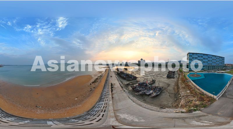 2025年5月25日,晨光中的山东省日照市阳光海岸绿道景美如画。