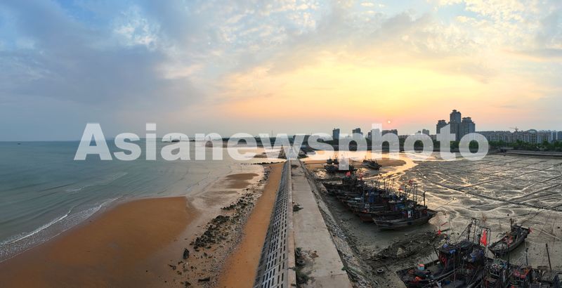 2025年5月25日,晨光中的山东省日照市阳光海岸绿道景美如画。