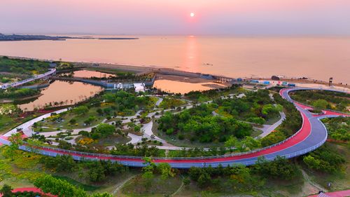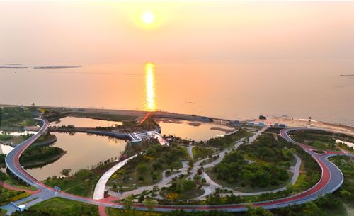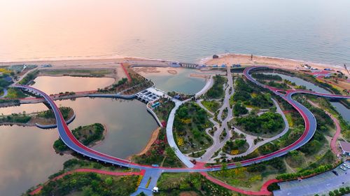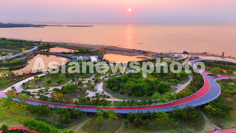 2025年5月25日,晨光中的山东省日照市阳光海岸绿道景美如画。