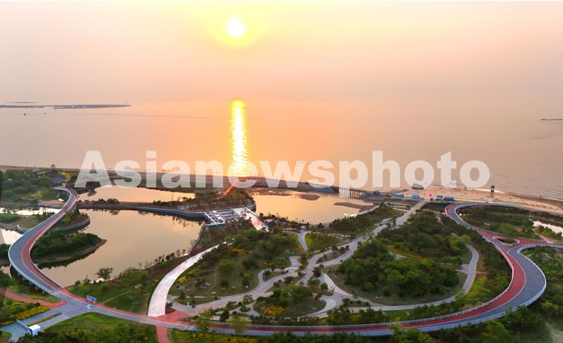 2025年5月26日,晨光中的山东省日照市阳光海岸绿道景美如画。