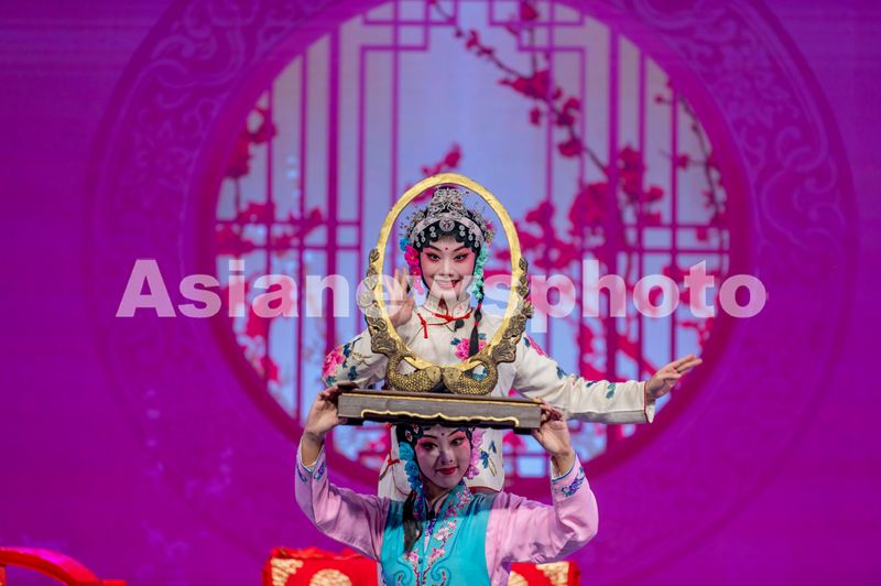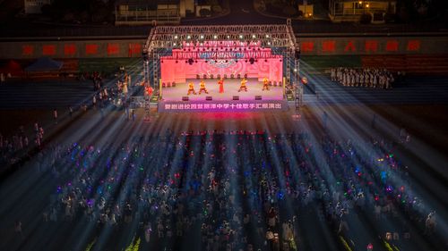 图片说明:2025年5月25日晚上,浙江省金华市丽泽中学校园里,婺剧演员在给全校师生表演传统婺剧选段。
