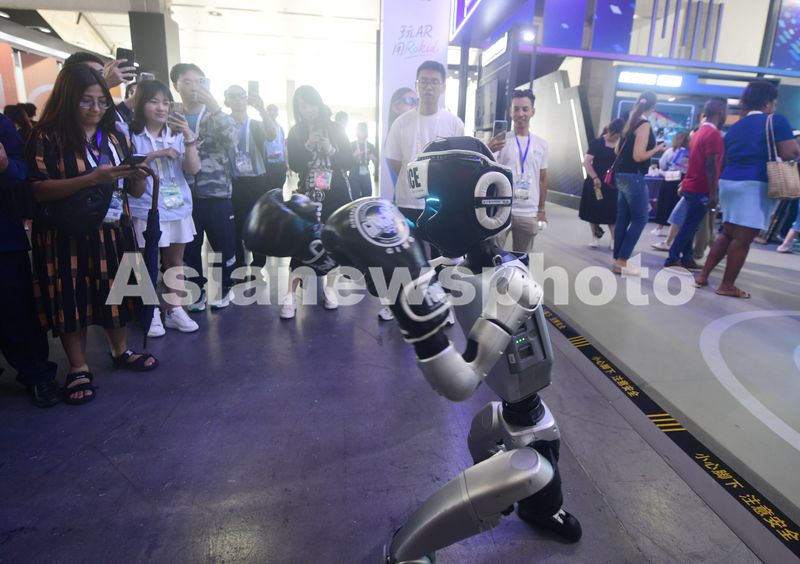 当日,参加过“CMG世界机器人大赛·系列赛”机甲格斗擂台赛的宇树G1人形机器人亮相在杭州举行的第二十一届中国国际动漫节,吸引不少观众前观看,并与宇树G1人形机器人进行“拳击比赛”,感受科技带来的乐趣。