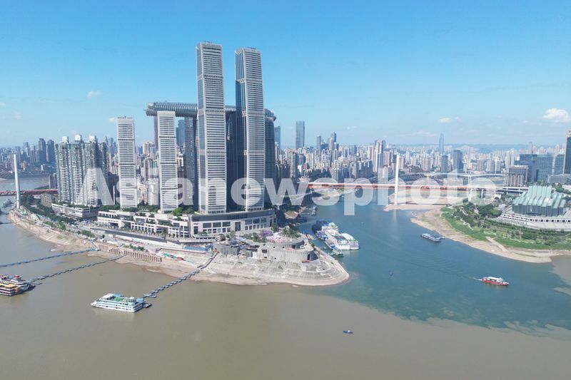 2025年5月29日,重庆朝天门码头长江与嘉陵江交汇处出现泾渭分明的“鸳鸯锅”景象。