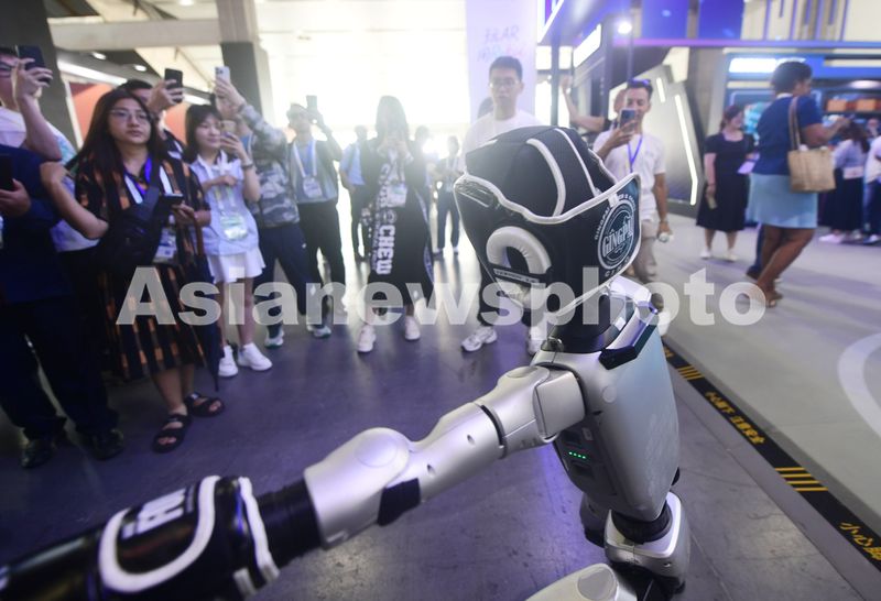 当日,参加过“CMG世界机器人大赛·系列赛”机甲格斗擂台赛的宇树G1人形机器人亮相在杭州举行的第二十一届中国国际动漫节,吸引不少观众前观看,并与宇树G1人形机器人进行“拳击比赛”,感受科技带来的乐趣。