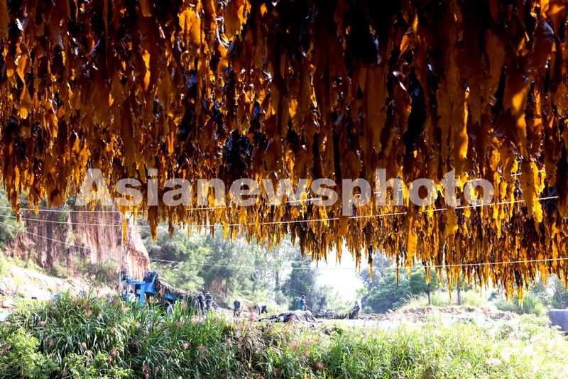 2025年5月30日,村民在福建省宁德市霞浦县下浒镇前洋村晾晒海带。