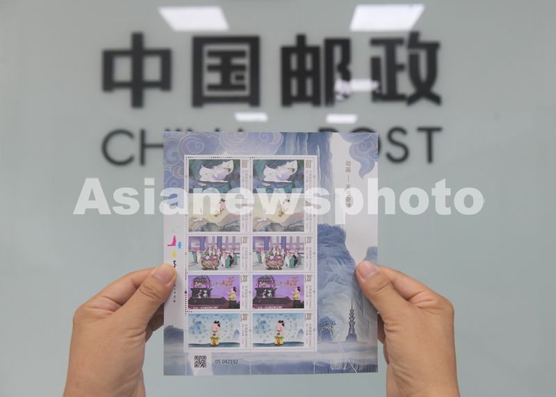 2025年6月1日,在中国邮政集团公司河北省新乐市分公司拍摄的《动画——天书奇谭》纪特邮票。