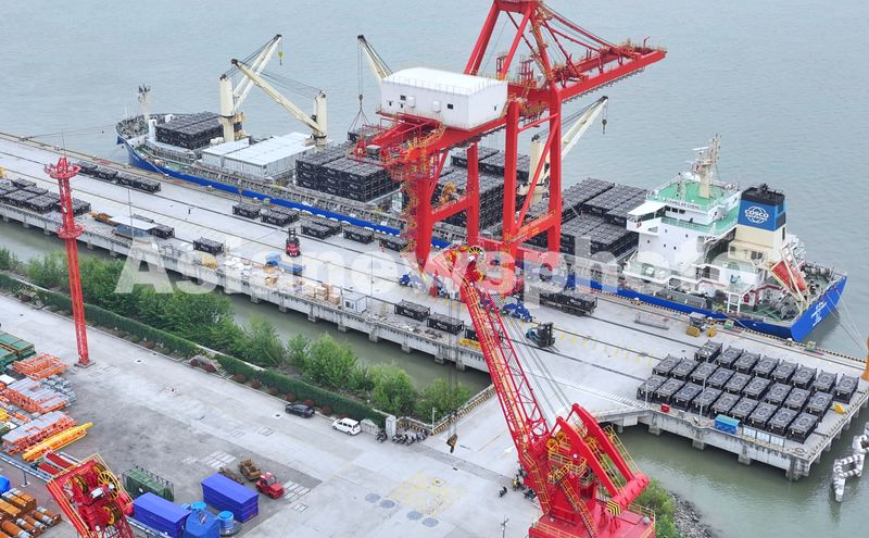 图片说明:2025年5月31日,江苏张家港港码头车来船往,货物装卸繁忙有序。