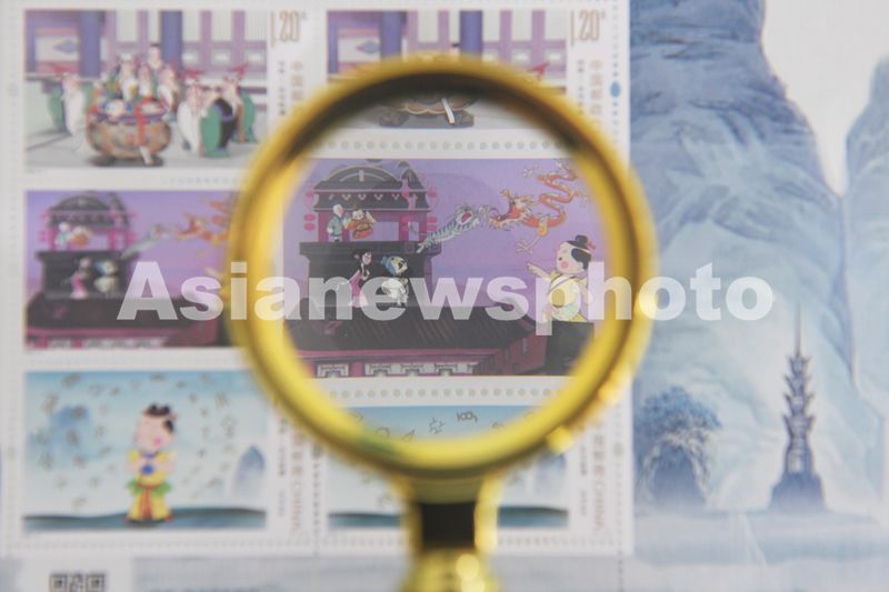 2025年6月1日,在中国邮政集团公司河北省新乐市分公司,集邮爱好者展示发行的《动画——天书奇谭》纪特邮票。当日,中国邮政发行《动画——天书奇谭》纪特邮票。该套邮票共5枚,面值分别为:80分、80分、1.20元、1.20元、1.20元 。邮票图案名称分别为:凿书云梦、蛋生拜师、巧用宝盆、大战狐妖、天书永传。