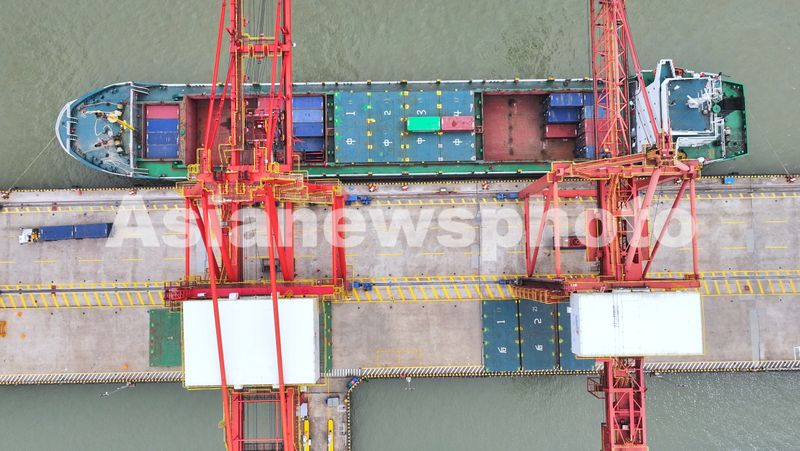 图片说明:2025年5月31日,江苏张家港港码头车来船往,货物装卸繁忙有序。