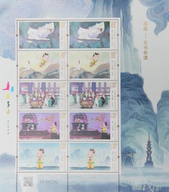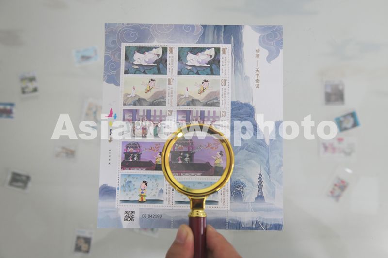 2025年6月1日,在中国邮政集团公司河北省新乐市分公司拍摄的《动画——天书奇谭》纪特邮票。