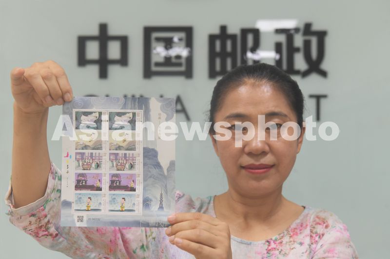 2025年6月1日,在中国邮政集团公司河北省新乐市分公司,集邮爱好者展示发行的《动画——天书奇谭》纪特邮票。