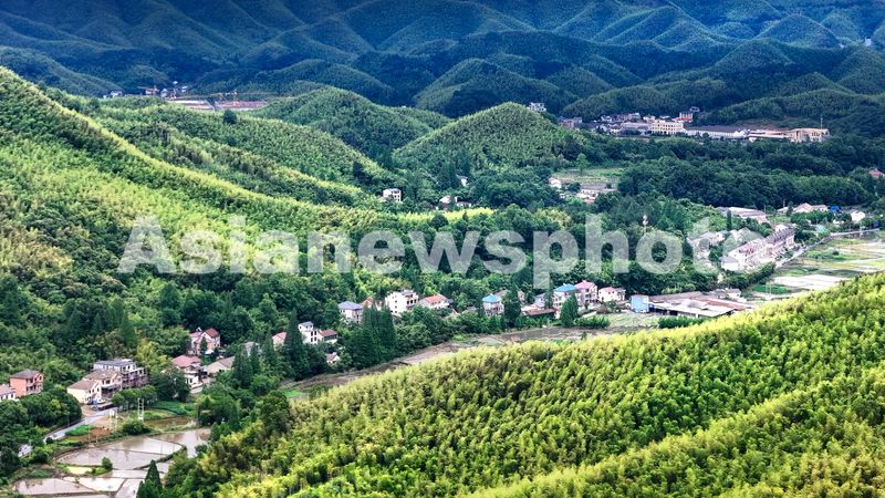2025年6月2日,浙江省湖州市安吉县天荒坪镇,满目苍翠的夏日竹海与民居、田园、云海等相映成景,绘就出一幅美丽的生态画卷。