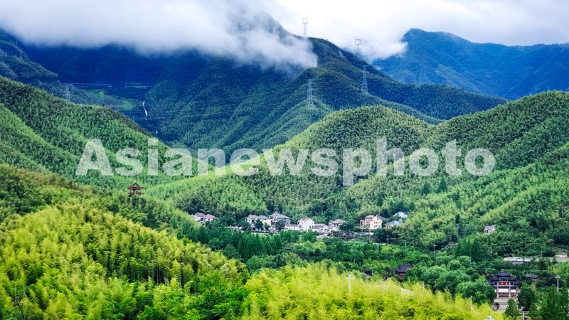 2025年6月2日,浙江省湖州市安吉县天荒坪镇,满目苍翠的夏日竹海与民居、田园、云海等相映成景,绘就出一幅美丽的生态画卷。