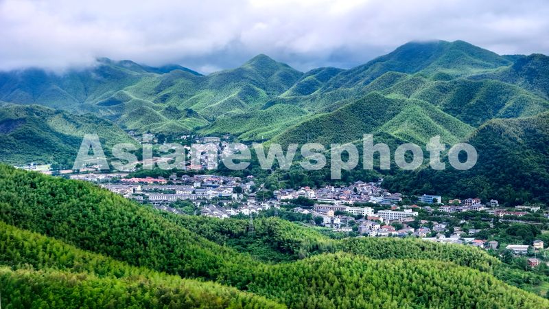 2025年6月2日,浙江省湖州市安吉县天荒坪镇,满目苍翠的夏日竹海与民居、田园、云海等相映成景,绘就出一幅美丽的生态画卷。