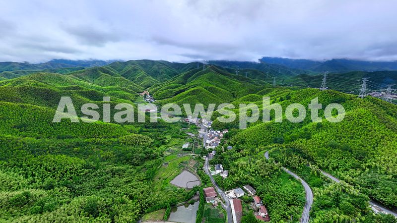 2025年6月2日,浙江省湖州市安吉县天荒坪镇,满目苍翠的夏日竹海与民居、田园、云海等相映成景,绘就出一幅美丽的生态画卷。