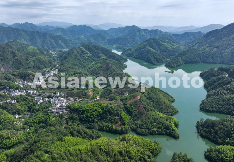 仲夏时节,在安徽省黄山市徽州区洽舍乡,丰乐河碧波轻漾,两岸青山叠翠,环绕着鳞次栉比的徽派村落,绘就了一幅生机盎然的山水田园图卷。