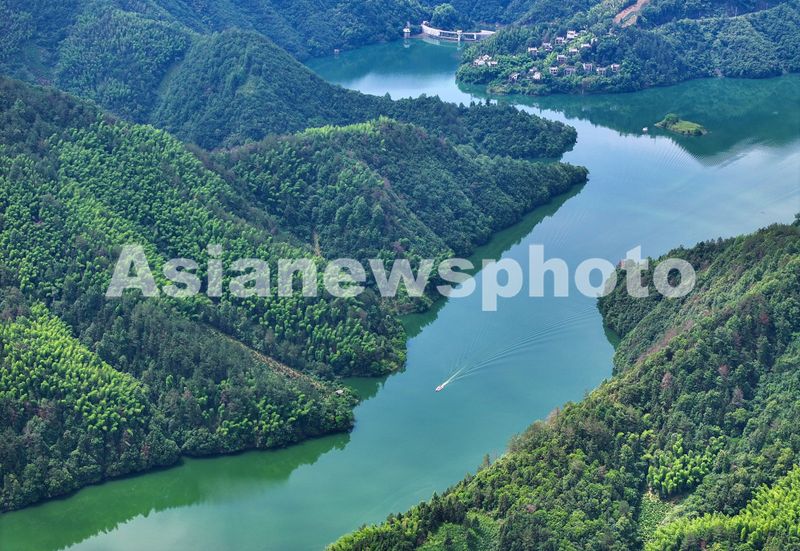 2025年6月6日,在安徽省黄山市徽州区洽舍乡拍摄的风光旖旎的丰乐河生态美景。
