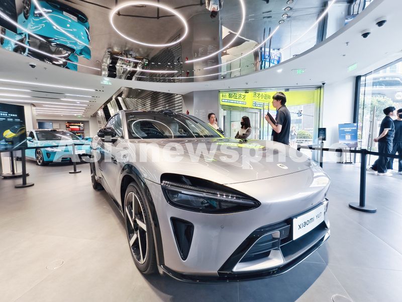 2025年6月5日,上海,钛金属版小米YU7新能源电动汽车亮相小米之家旗舰店,作为小米汽车旗下首款豪华高性能SUV电动车,银色酷炫造型吸引消费者关注。此前小米投资者大会上,小米集团创始人、董事长兼CEO雷军否认了YU7起售价为网传的23.59万元,强调小米反内卷不打价格战,此外还透露小米正在研发汽车芯片。