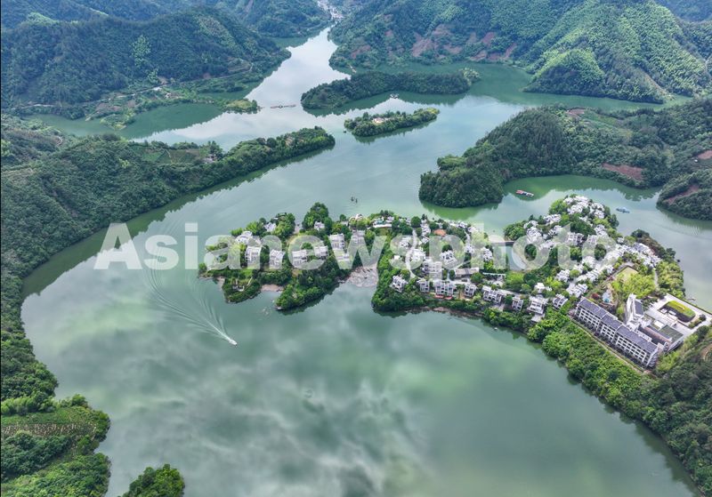仲夏时节,在安徽省黄山市徽州区洽舍乡,丰乐河碧波轻漾,两岸青山叠翠,环绕着鳞次栉比的徽派村落,绘就了一幅生机盎然的山水田园图卷。
