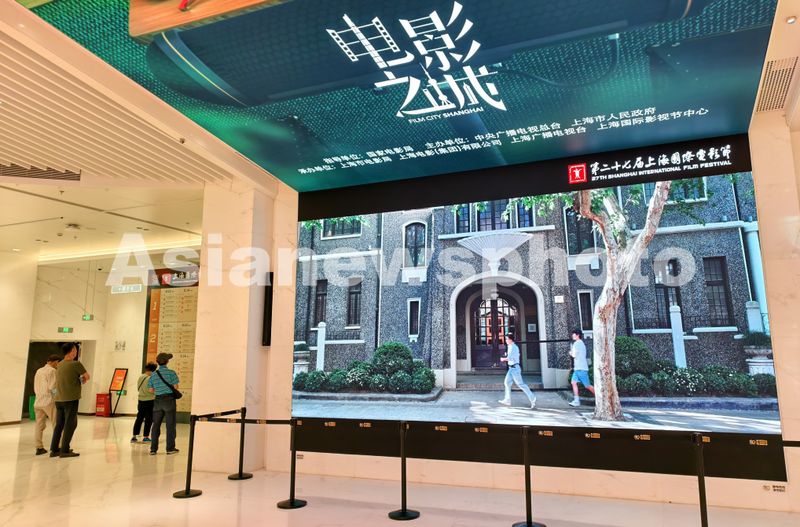 图片说明:2025年6月5日,上海国际电影节主会场上海影城内,大屏幕播放的官方宣传片展现魔都正打造以首映、首发、首展和取景地旅游为特色的中国电影地标城市。