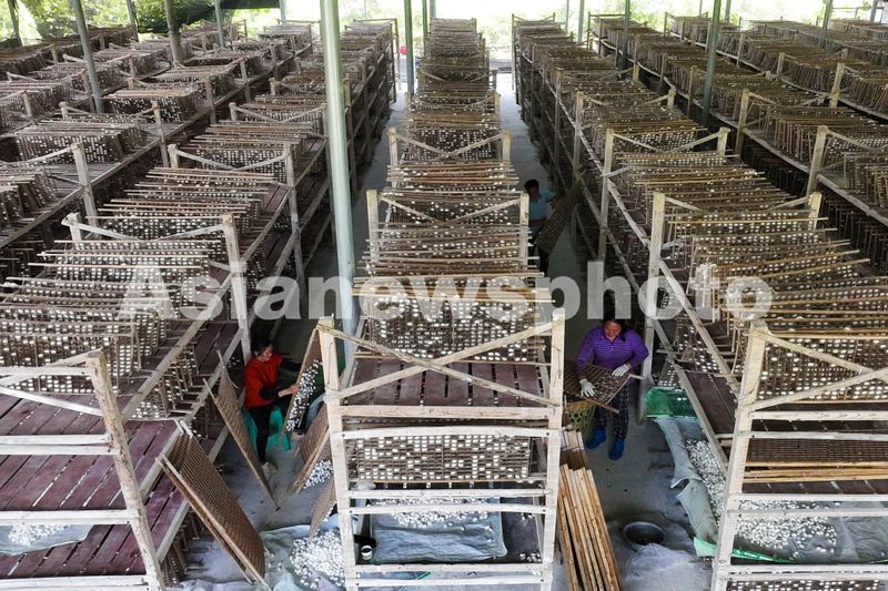该区还根据不同海拔和季节,全年分7批次饲养桑蚕。时下,首批春蚕结茧结束,村民们正抓紧摘茧、然后交售给丝绸加工企业,确保增产增收。