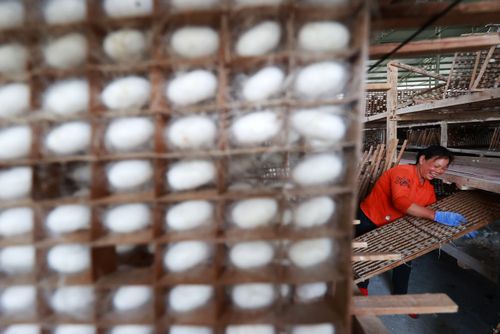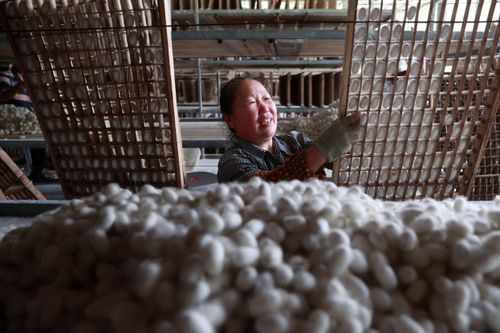 该区还根据不同海拔和季节,全年分7批次饲养桑蚕。时下,首批春蚕结茧结束,村民们正抓紧摘茧、然后交售给丝绸加工企业,确保增产增收。
