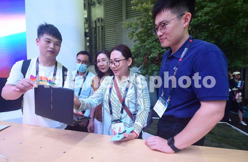 2025年6月18日,观众在上海举办的2025世界移动通信大会上参观华为的折叠屏电脑。