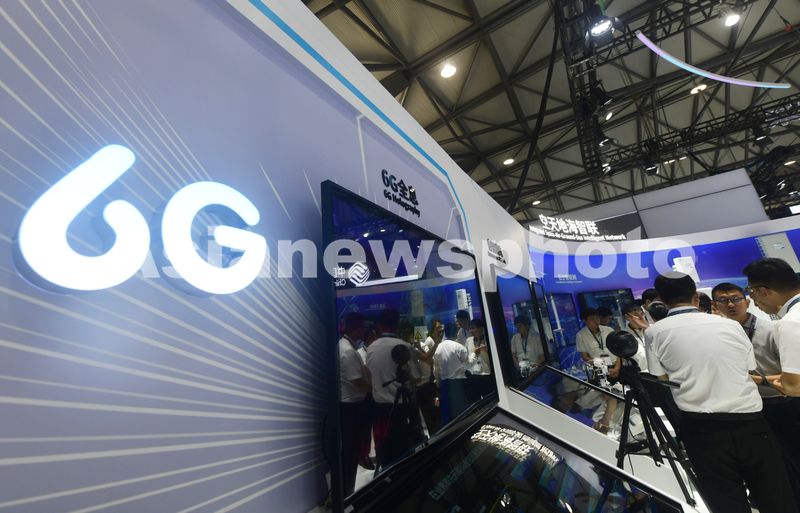2025年6月18日,观众在上海举办的2025世界移动通信大会上了6G通信技术。
