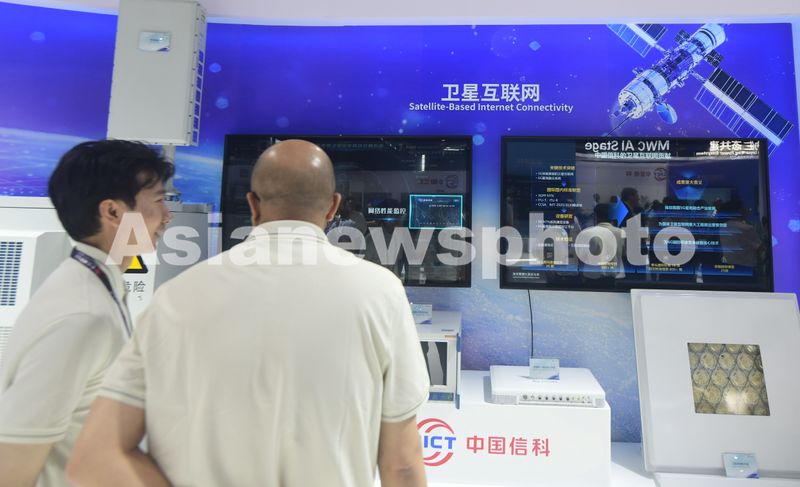 2025年6月18日,观众在上海举办的2025世界移动通信大会上了解卫星互联网技术。